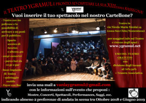 Se hai uno Spettacolo, una Mostra, Performance, Saggio, Concerto o un altro tipo di evento per il pubblico e cerchi uno spazio teatrale ove portarlo… YGRAMUL è il tuo Teatro.